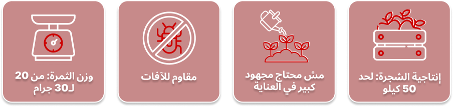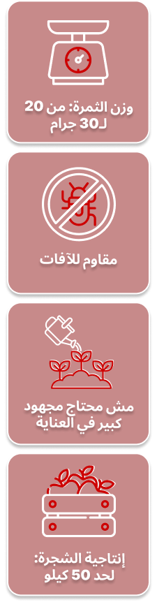 هذه الثمار الكبيرة، التي يصل وزنها إلى 30 جرام، ستصبح جوهرة حقيقية في حديقتك، وستسعدك أنت وأحبائك بنكهتها العصرية اللذيذة.