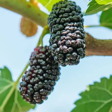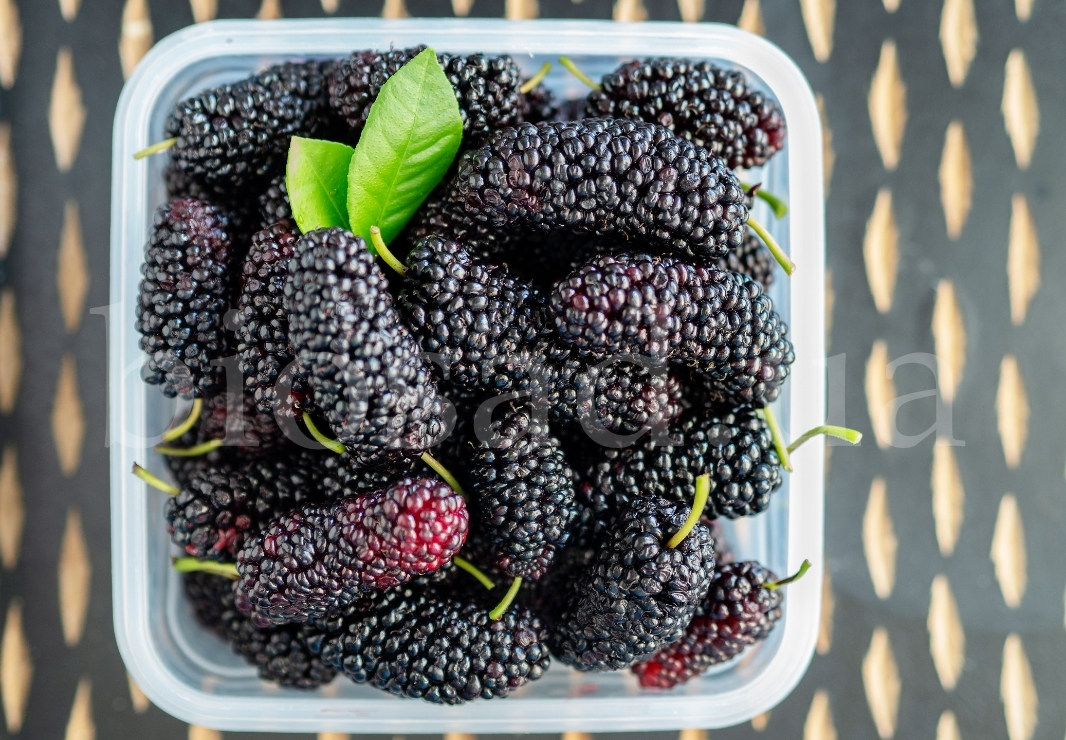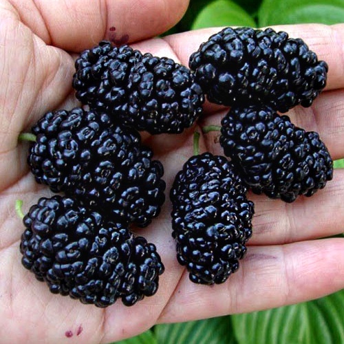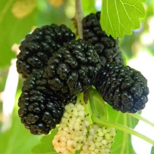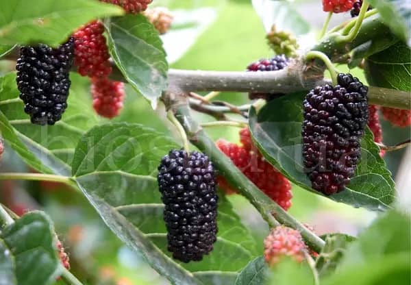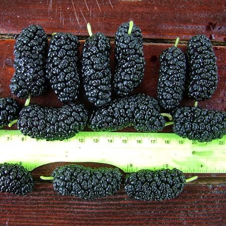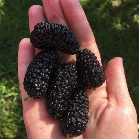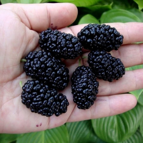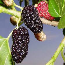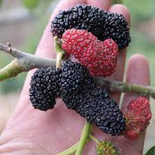 الثمار: أرجوانية داكنة، بطول 5–8 سم، ووزن 6–7 غرامات