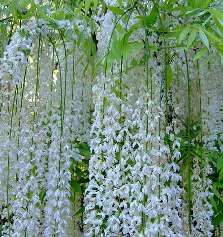 Wisteria 'White Angel' (Wisteria sinensis 'Alba') is a wisteria variety with white flowers that creates an impressive look in any garden or landscape. A perennial vine with woody smooth shoots, capable of growing 15–20 meters long. The leaves are oval, compound, odd-pinnate, arranged in groups of 7–13, 6–8 cm long and about 3 cm wide.