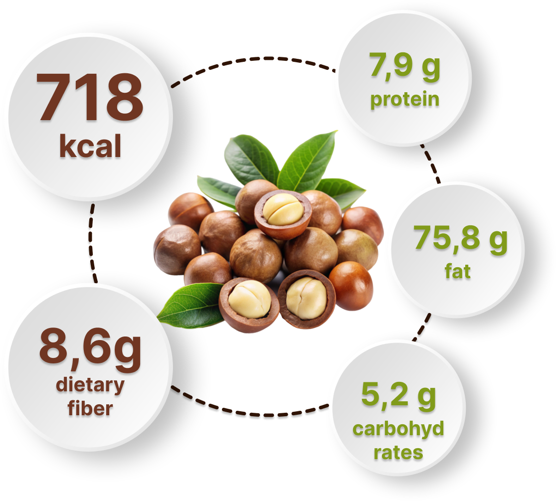 NUTRITIONAL VALUE OF MACADAMIA (per 100g)