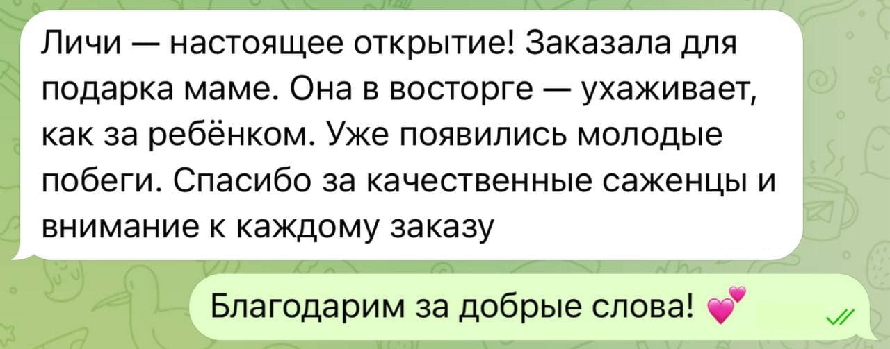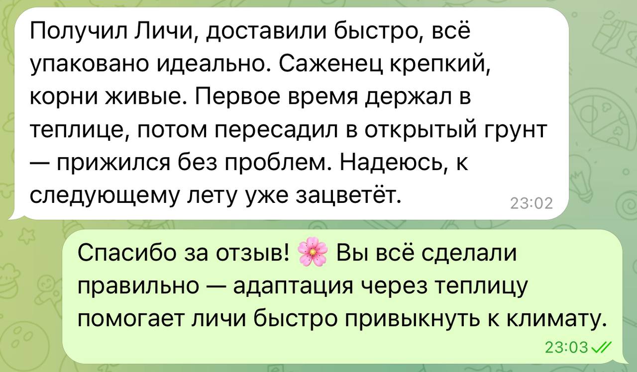Заполните форму, и наш специалист свяжется с вами, чтобы подобрать идеальный саженец Lychee и рассказать о доставке.