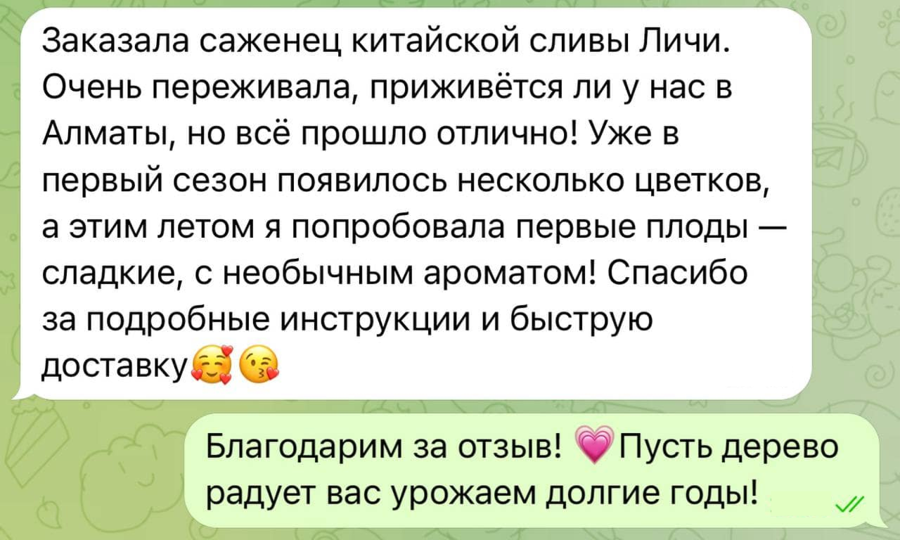 Наши клиенты делятся впечатлениями о посадке и первых урожаях китайской сливы Lychee.