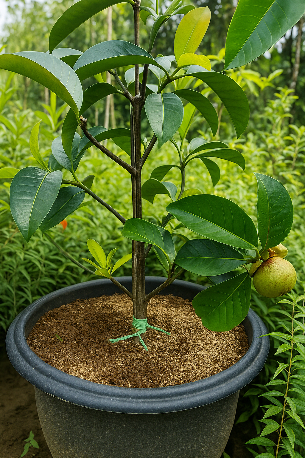 Мангостин любит влажный воздух — опрыскивайте листья и рыхлите почву раз в 1–2 недели.