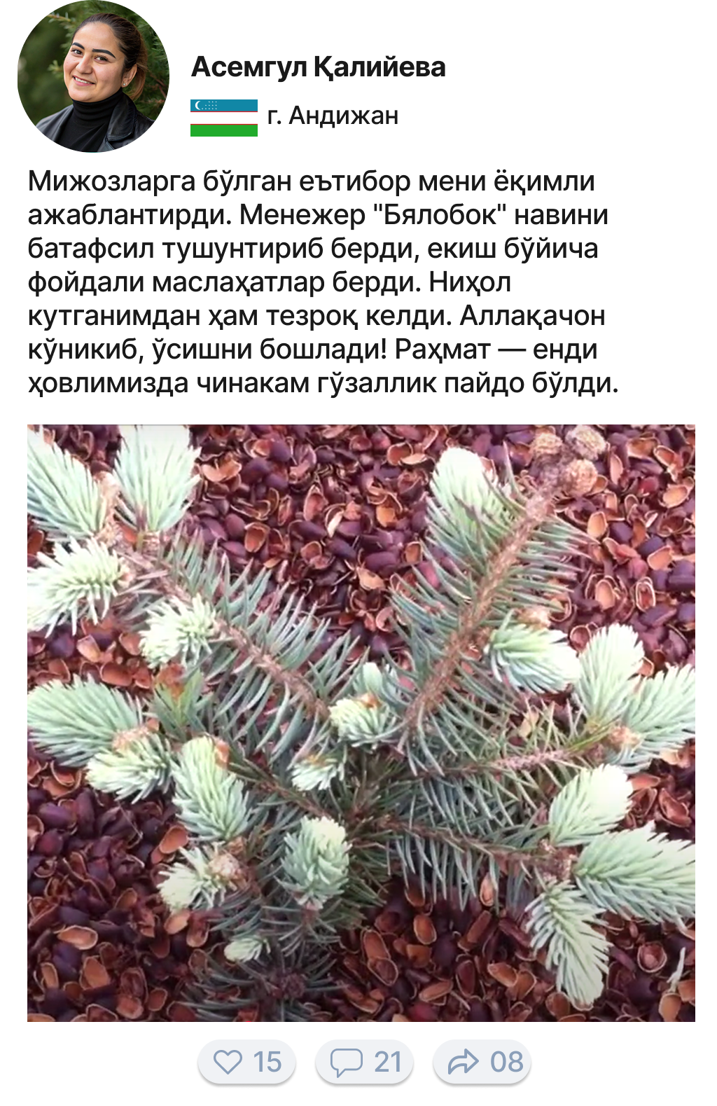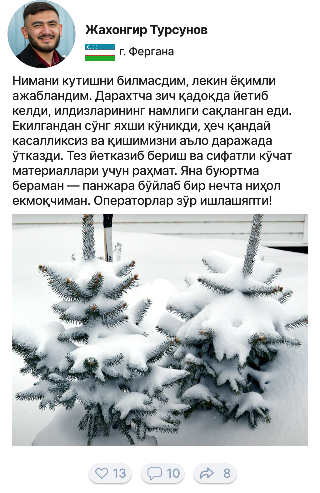 Кўк арча ниҳолларига буюртма бериш учун ариза қолдиринг — операторларимиз сиз билан боғланиб, буюртмани расмийлаштиришда ёрдам беришади!