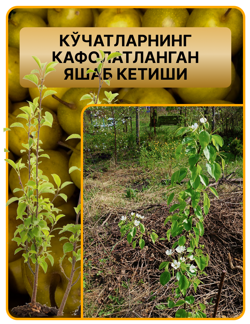 Асал ва олма ҳидли, серсув, қарсилдоқ мевалар. Кўчатлар Ўзбекистон иқлимига мослашган, осон кўкаради ва келаси йилиёқ ҳосилга киради!