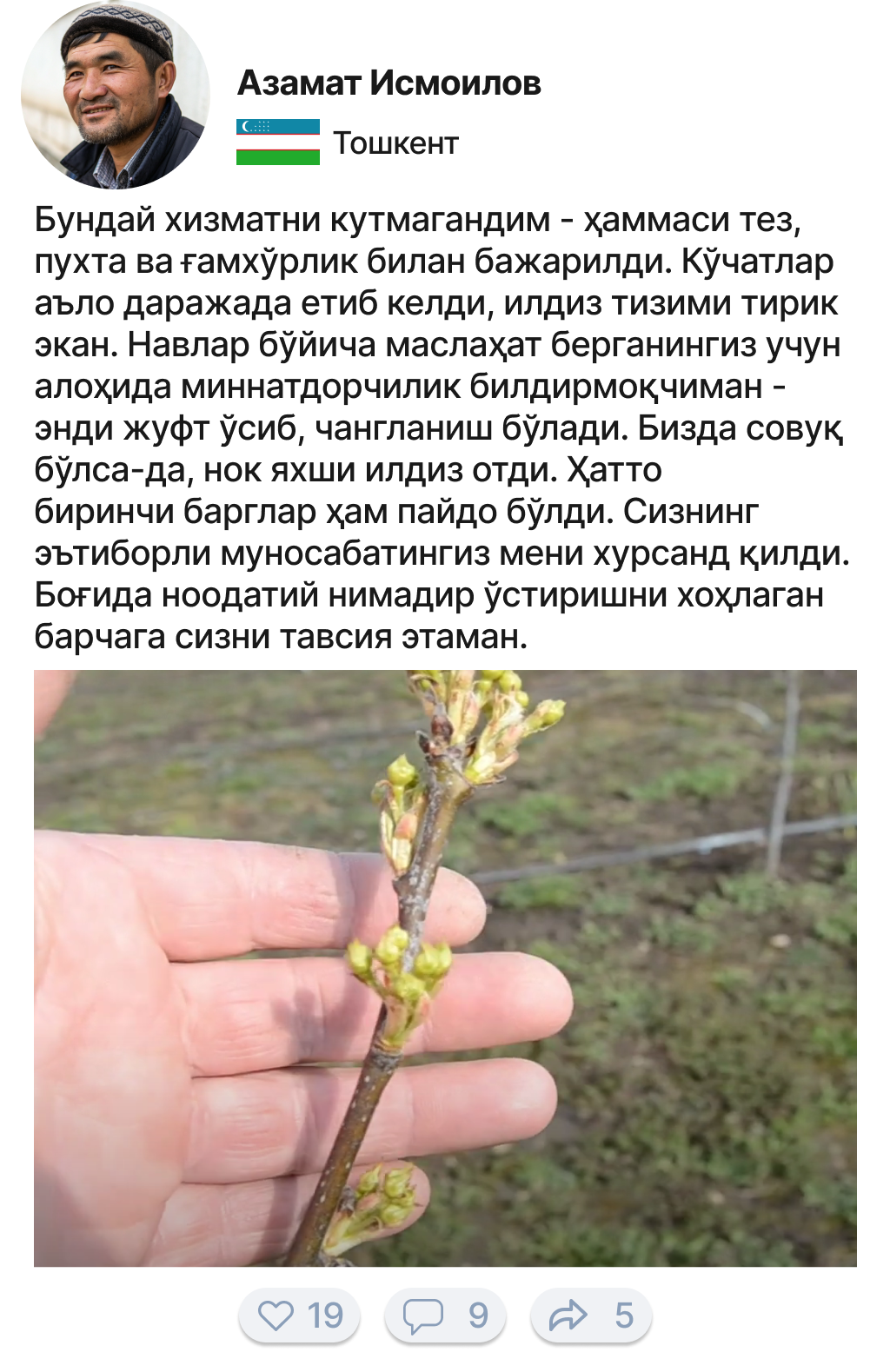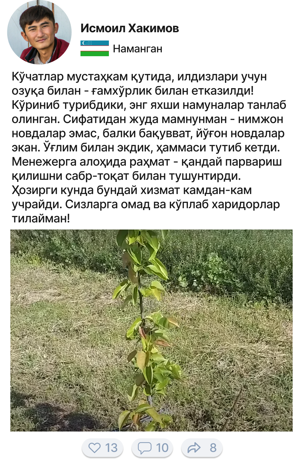 Соғлом ва бақувват кўчатларни етказиб бериш