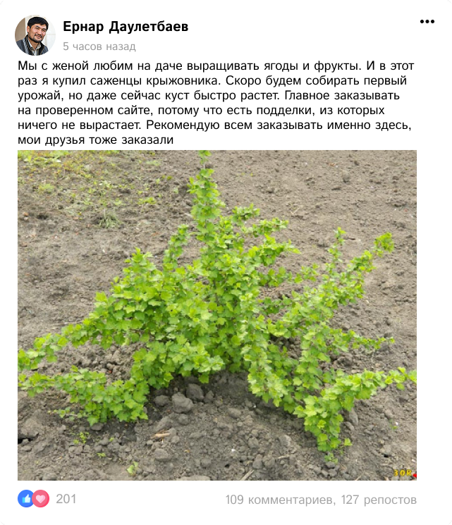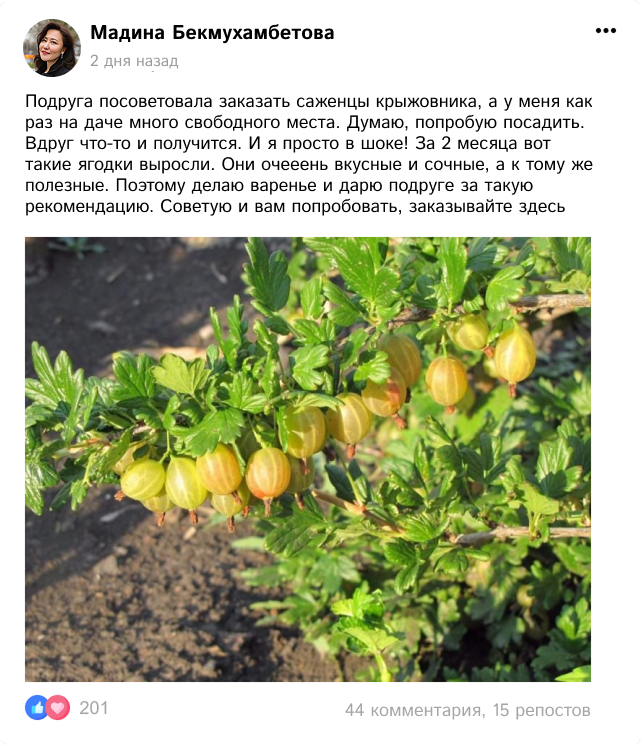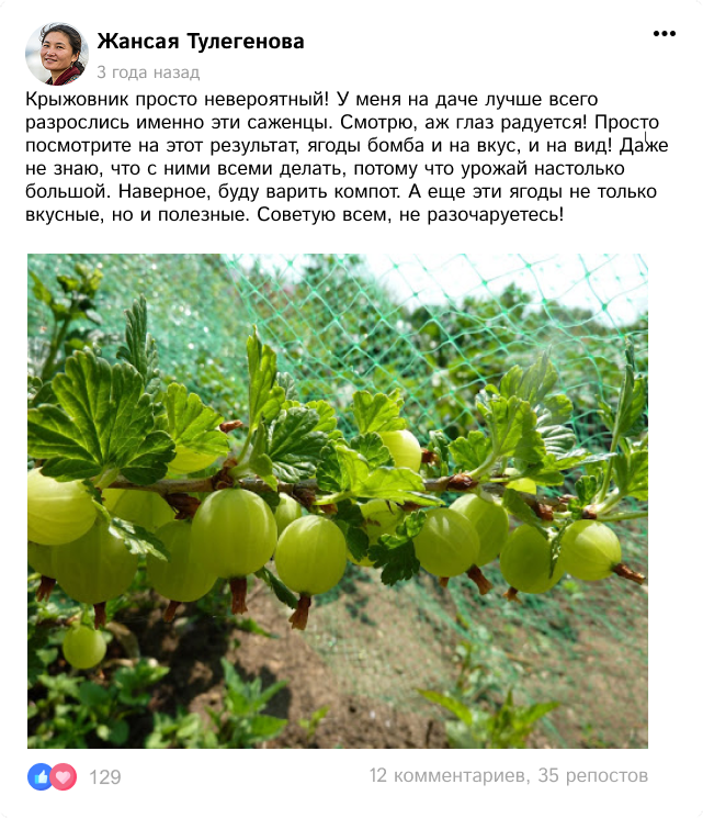 Кўчатлар тўпламини супер чегирма билан буюртма қилишга шошилинг ва ҳозироқ крижовник етиштиришни бошланг!