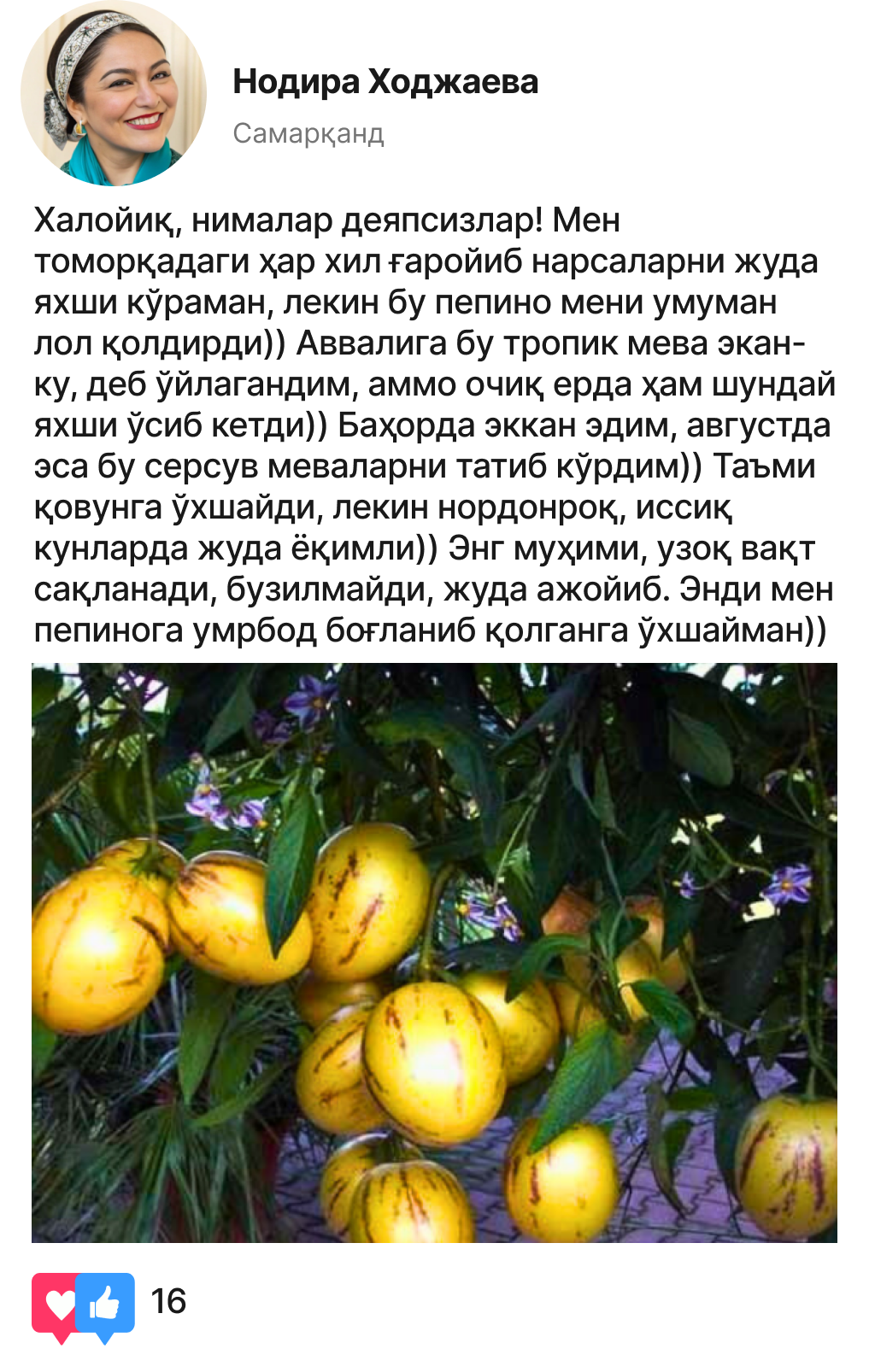 Ўзбекистоннинг барча минтақаларида етиштиришга жуда боп бўлган районлаштирилган пепино!