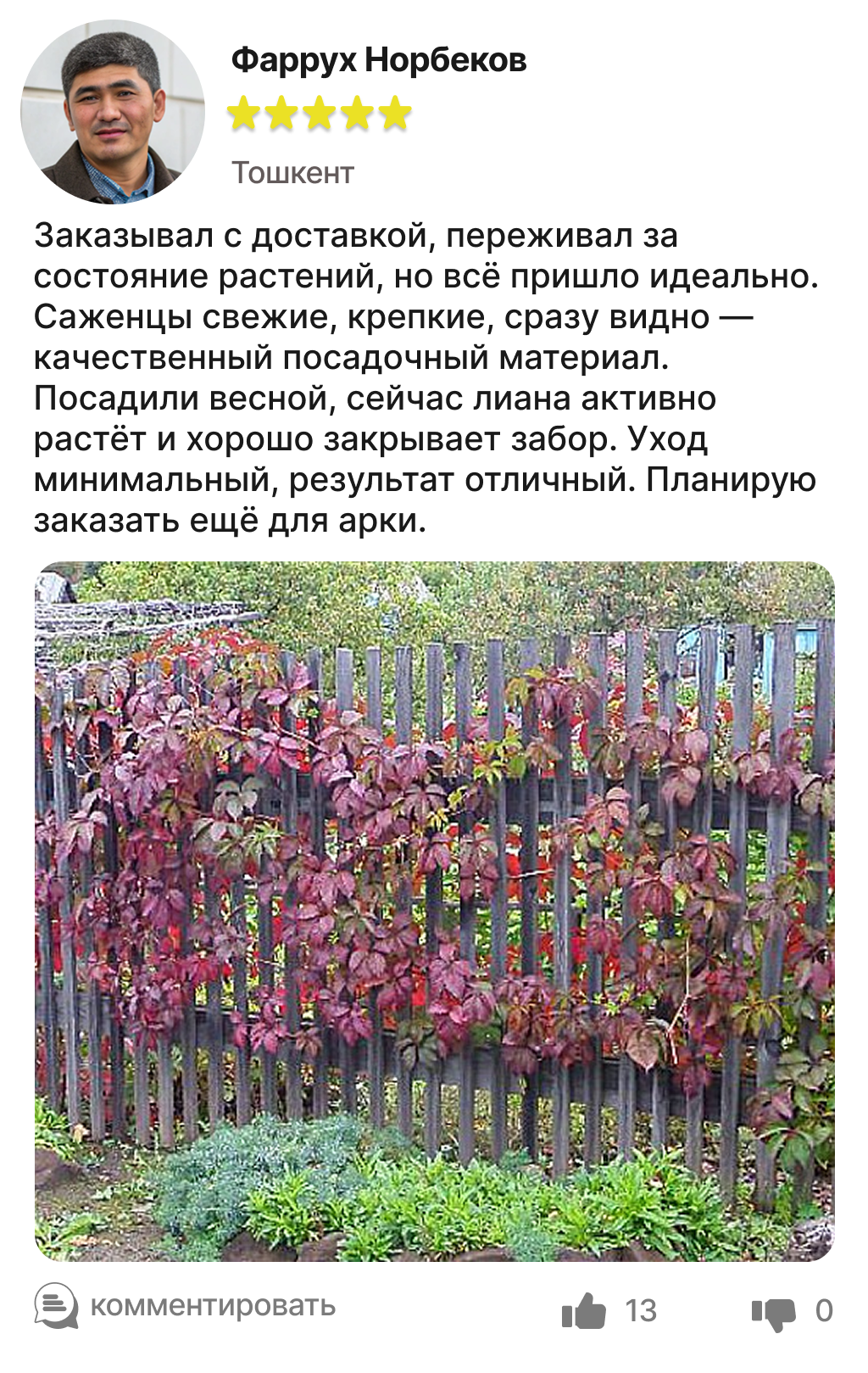 Ҳозироқ Вичи узум кўчатларига буюртма беринг - ва ҳудудингизни жонли манзарага айлантиринг